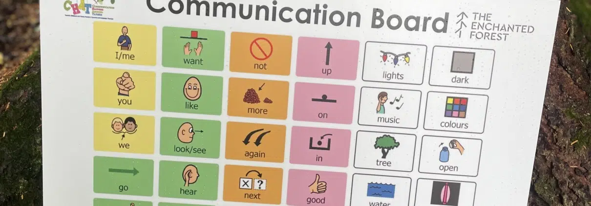 The specially designed communication boards, created in partnership with NHS Tayside, will be placed at each of the lighting installations throughout The Enchanted Forest event. NHS Tayside, in conjunction with Enable Communities, has developed a standard core set of symbols and words, which are displayed on the boards. These give children a visual way to express themselves, making the event a truly communication-friendly environment for families.