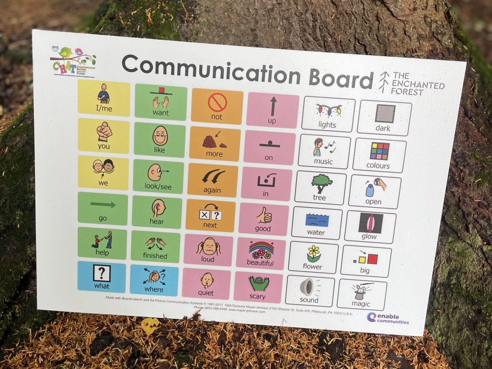 The specially designed communication boards, created in partnership with NHS Tayside, will be placed at each of the lighting installations throughout The Enchanted Forest event.